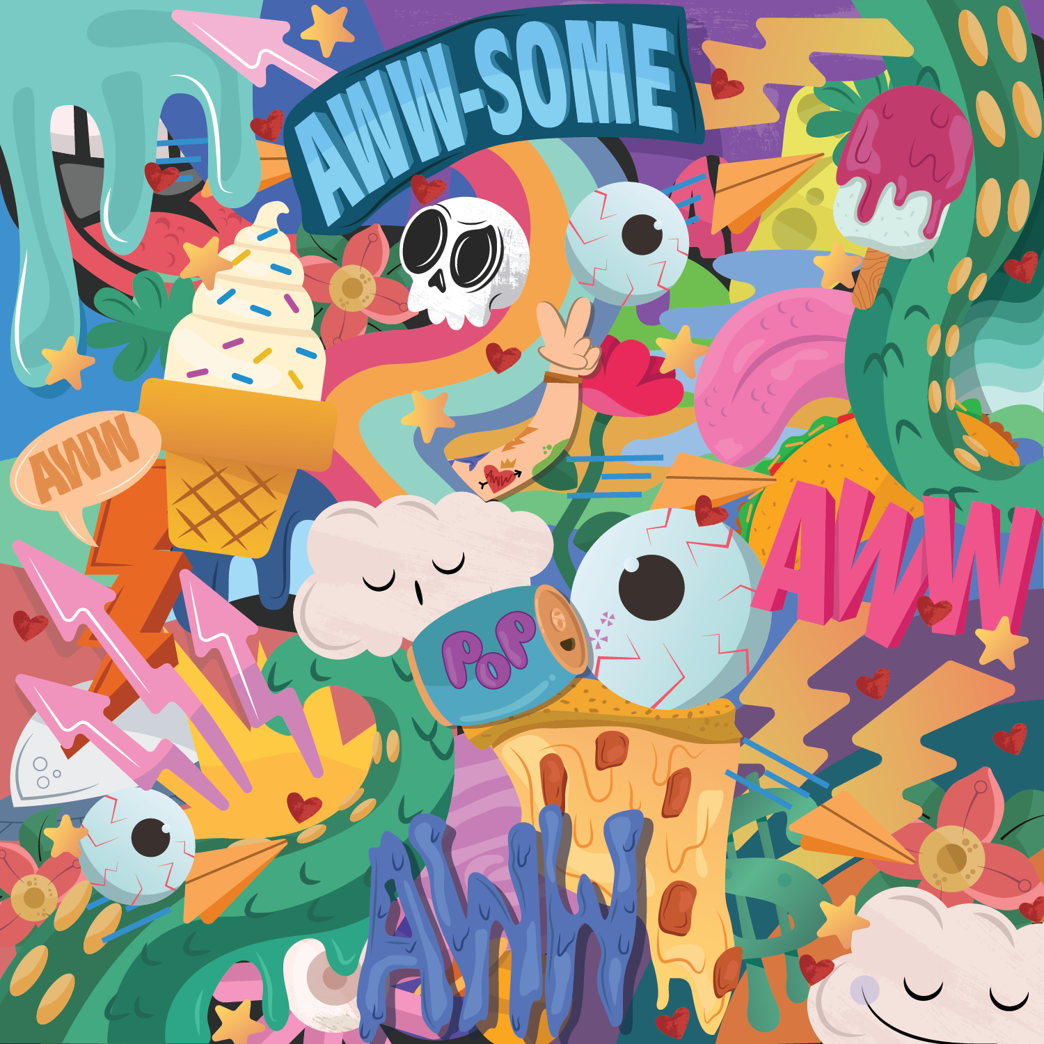 Below are two fun illustrations I did for the Aww Agency. The project brief was to create two compelling illustrations that felt like a burst of creativity and energy, and that also incorporated their brand name ‘Aww’. It was an extremely fun project where I got to be a little more loose and have a little more fun with it.