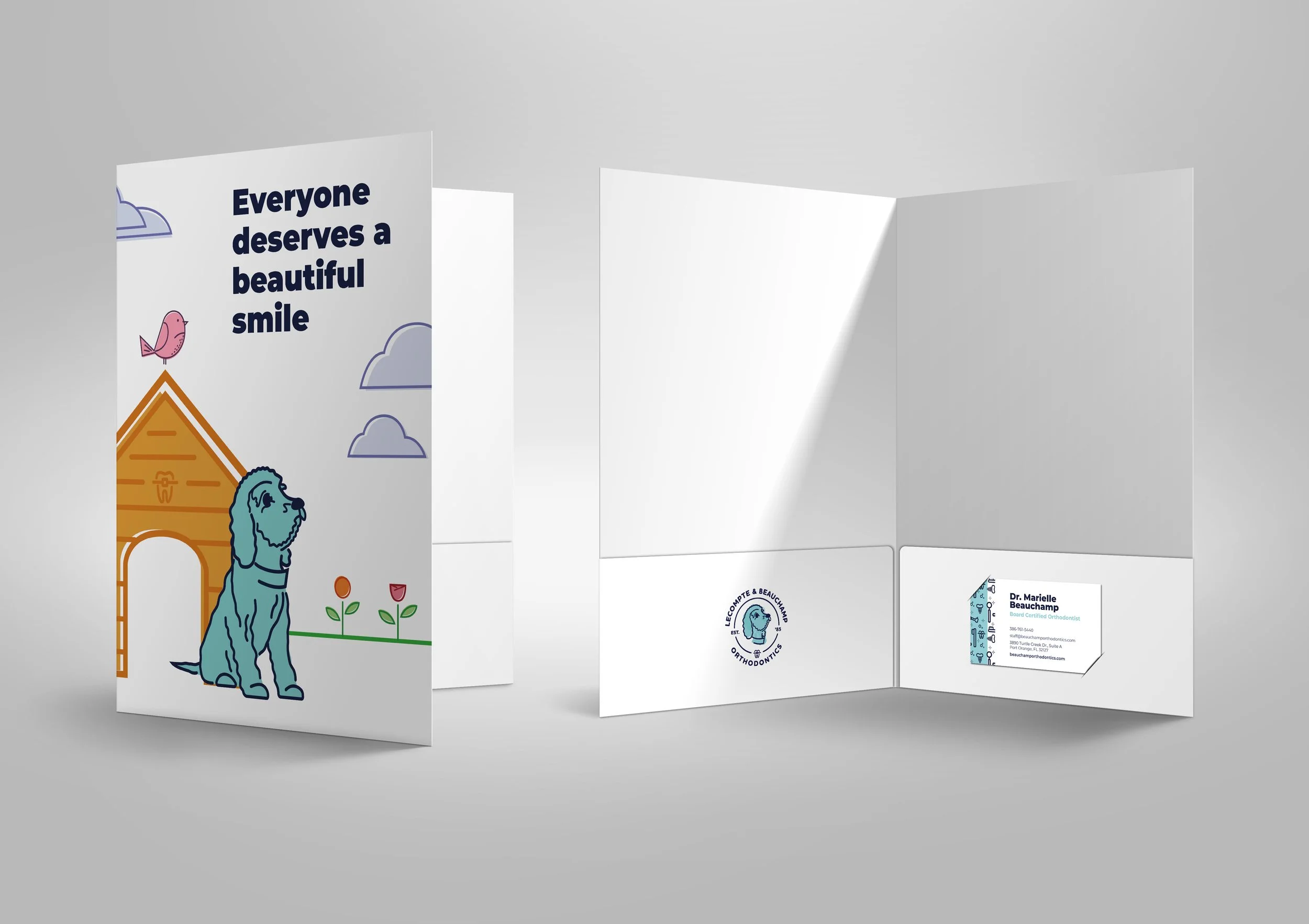 Lecompte and Beauchamp Orthodontics is a pediatric orthodontic practice specializing in braces for children. The owner was passionate about making her dog the face of the brand—a fitting choice given her young target audience. With kids in mind and a fun, energetic personality at the heart of the business, it was important for the brand to reflect that same spirit.
