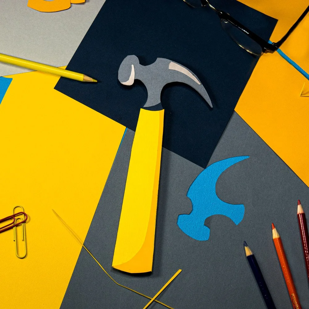 For New York Ave’s rebranding we wanted to show what the company does and who the company is. I helped come up with the concept of showing this in a cut paper sense. We start out with an ‘idea’ or a sketch and then show how we build this and bring it to life, similar to how we work. I crafted each cut paper piece, physically making it and then staging them and photographing them myself.