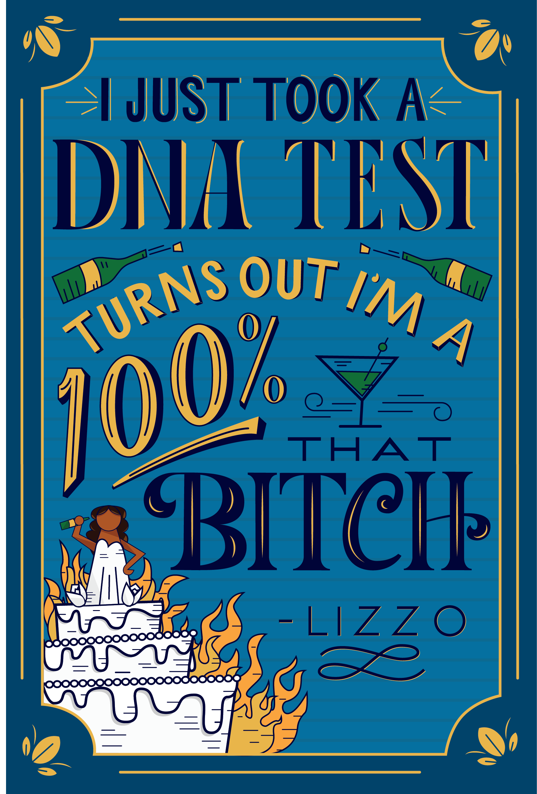 Lizzo’s hit breakout song Truth Hurts, is an anthem for many. This piece of illustration and hand lettering was meant to encompass the artist’s elegant but free spirit and attitude. The Mixture of elegant lettering with bright colors and playful illustrations play on each other and visually express the song itself.