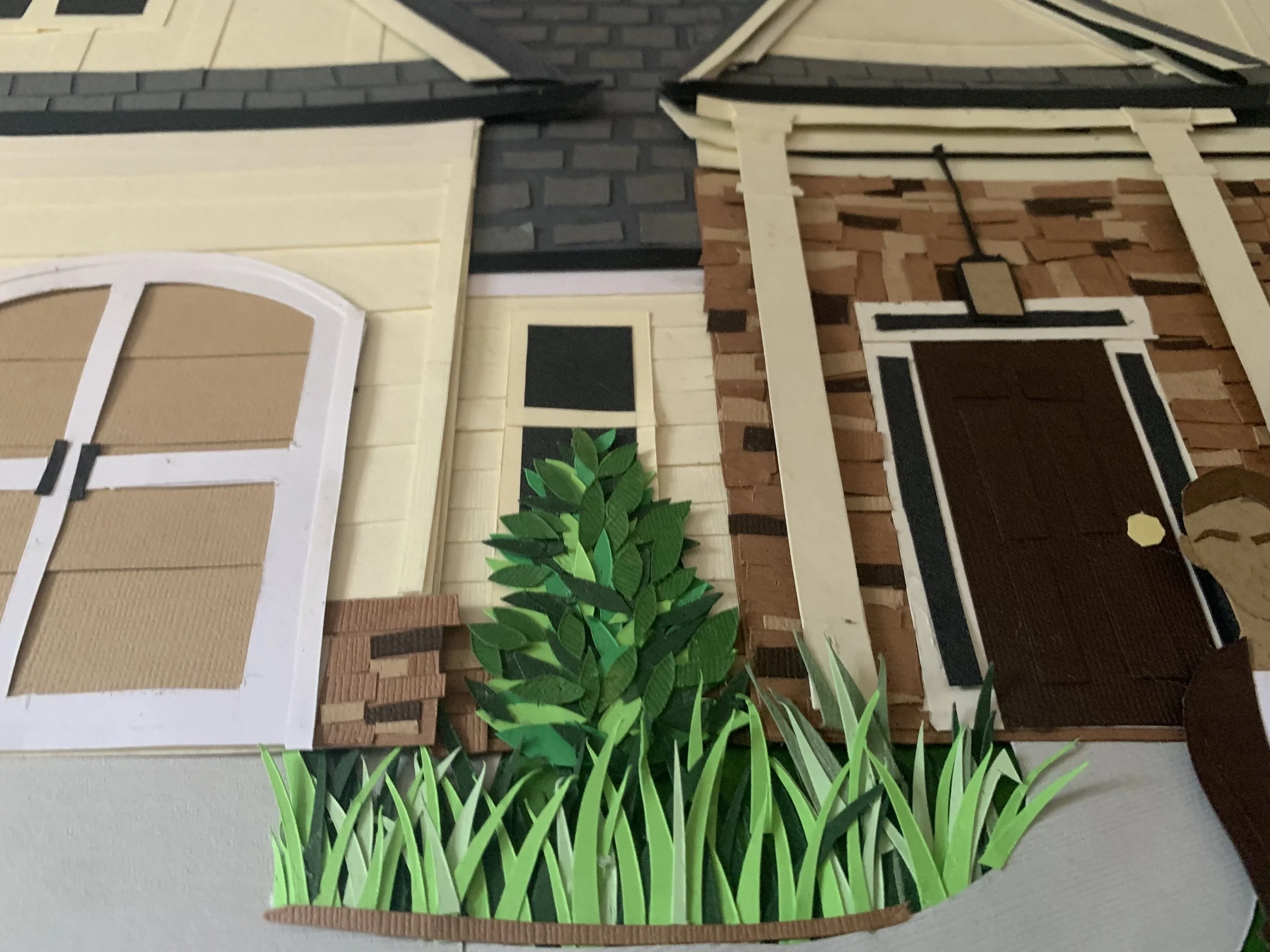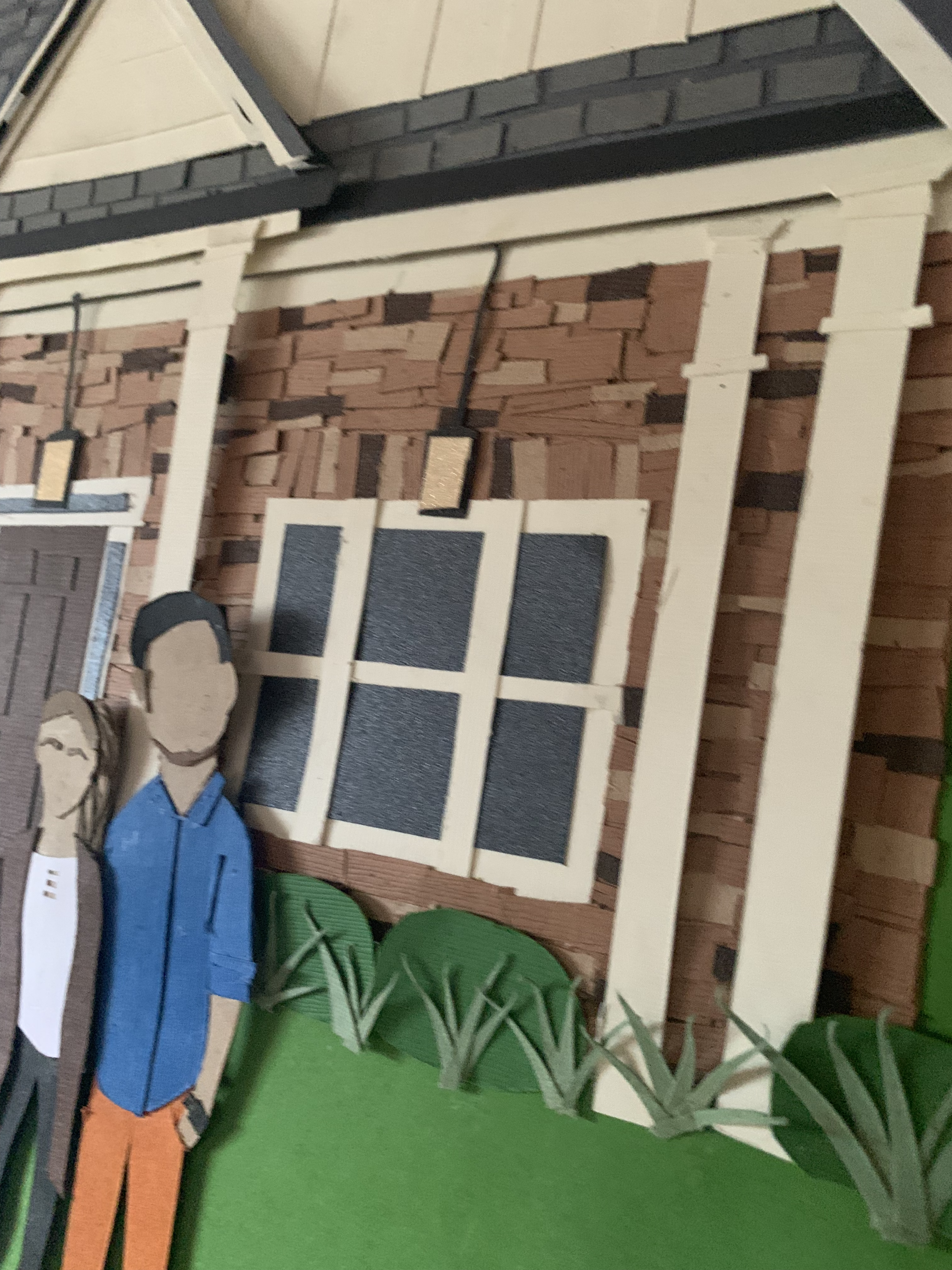 This was a commissioned piece I was asked to do as a housewarming gift. What better way to say welcome home, than a miniature paper version of you and your new home!